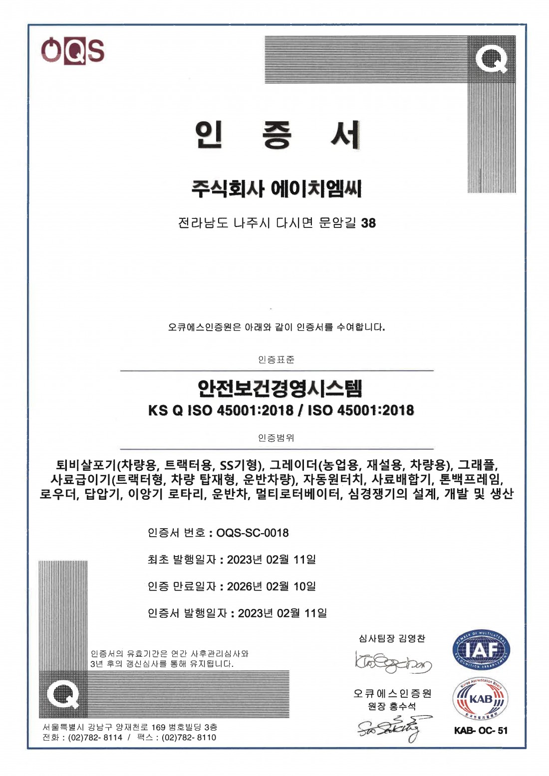 인증서 ISO45001 인증서(국문) 페이지 정보 작성자 관리자 댓글 댓글 0건 조회Hit 378회 작성일Date 25-08-29 11:35 본문 ISO45001 인증서(국문) 목록 이전글ISO45001 인증서(영문) 25.08.29 다음글품질경영시스템 인증서(영문) 25.08.29 댓글 0 댓글목록 등록된 댓글이 없습니다.